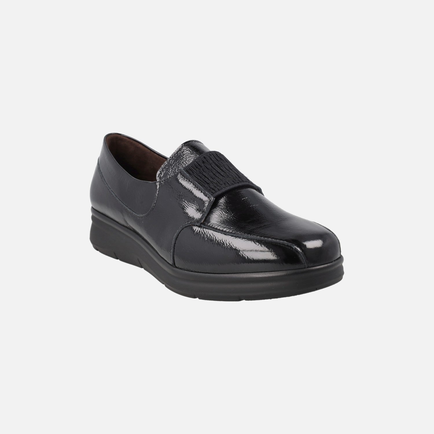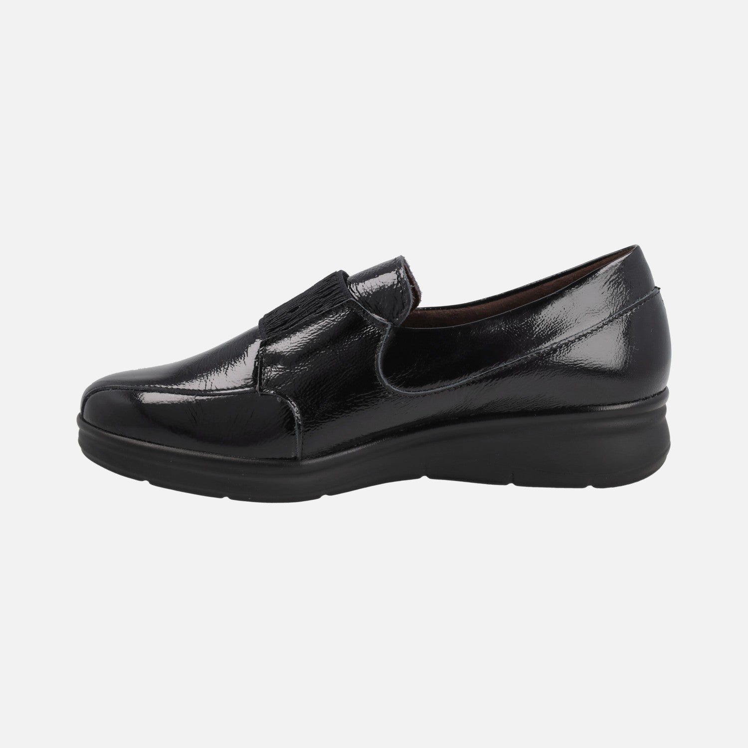 Zapatos confort en charol negro con banda elástica al empeine