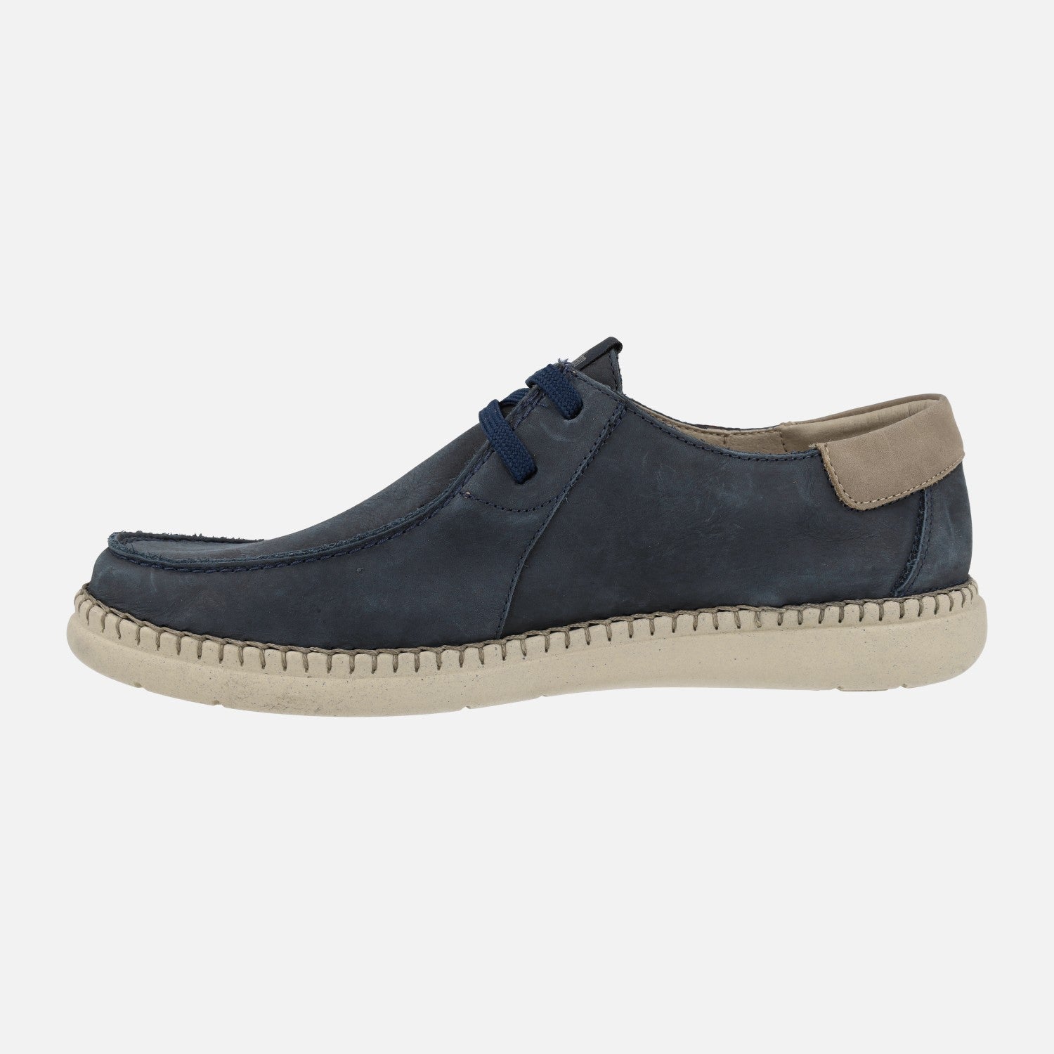 Zapatos estilo Wallaby para hombre de la marca Callaghan, con cierre de cordones, modelo 57600 cuero. Zapatos realizados en piel nobuck con piso de goma extralight, dando como resultado un zapato muy ligero y flexible. Plantillas extraíbles. El forro es de material textil técnico transpirable, antibacteriano y antiolor.
