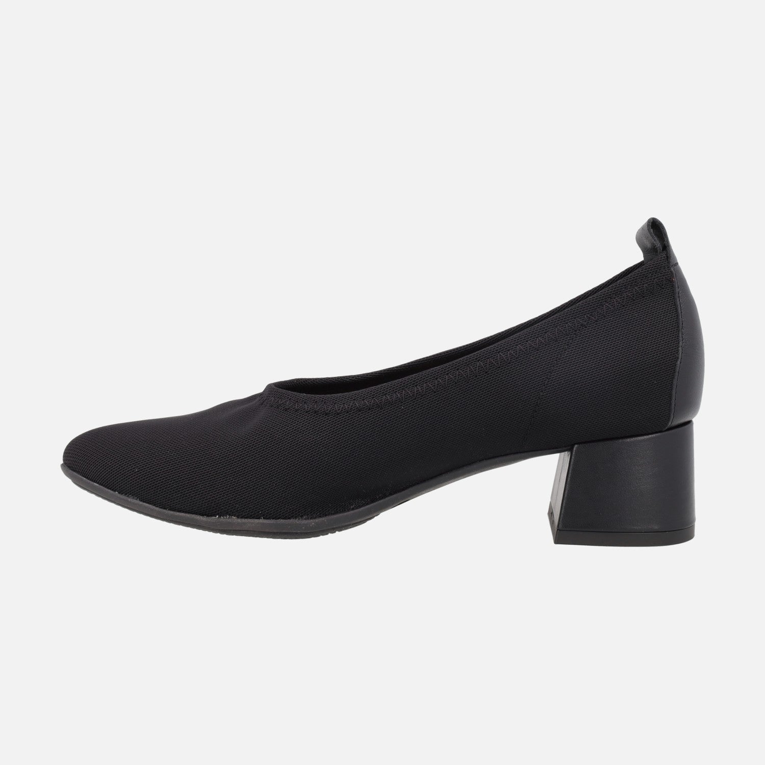 Zapatos corte salón en tejido elástico negro con tacones bajos