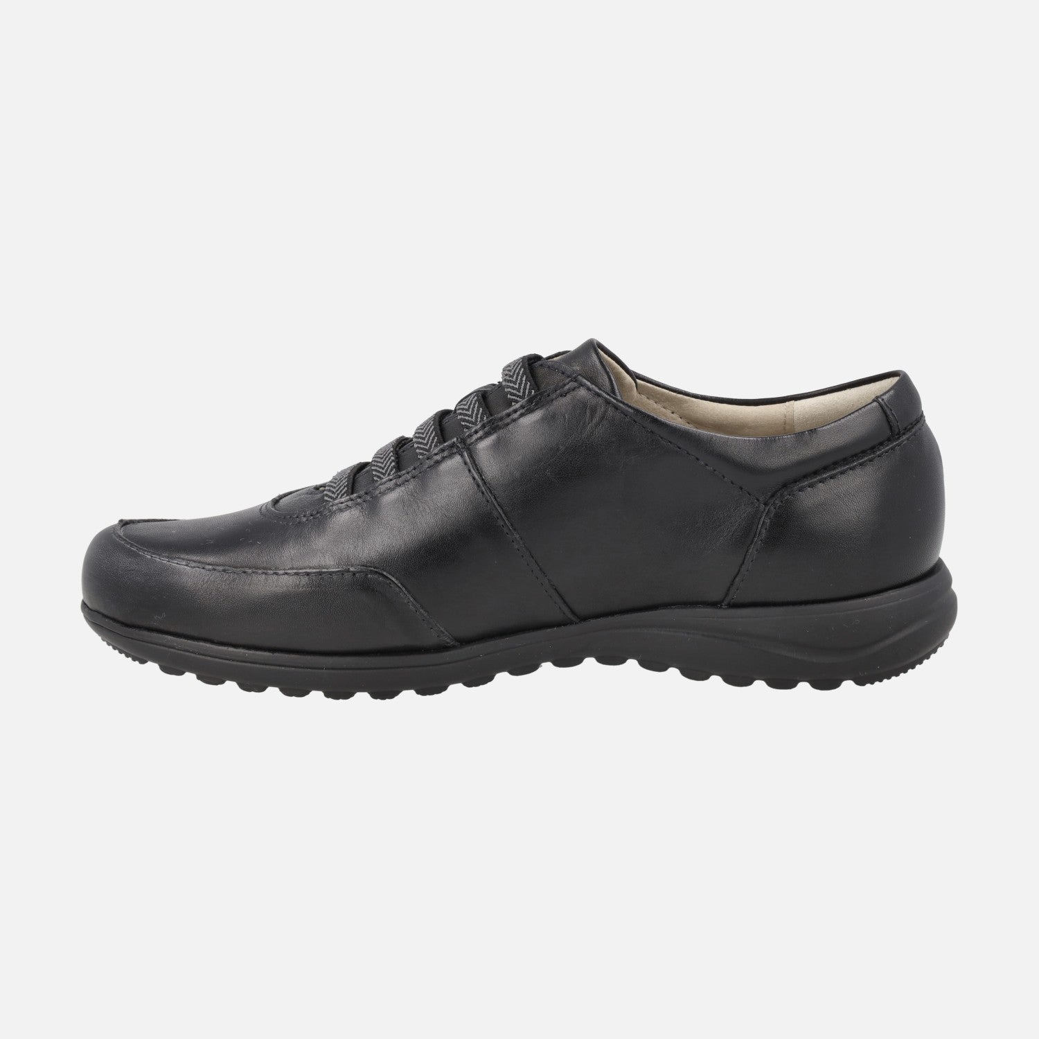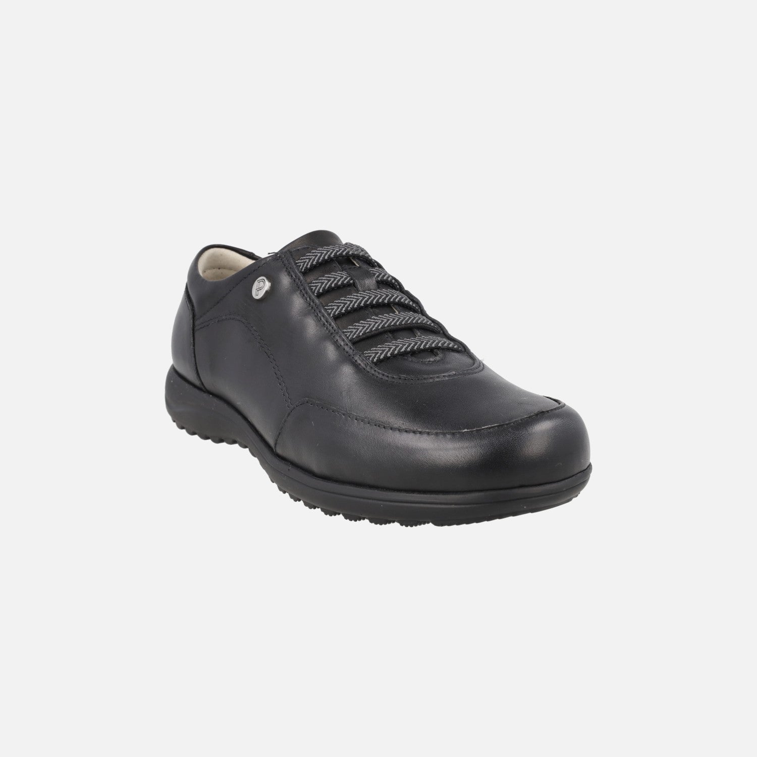 Zapatos confort de estilo deportivo para mujer de la marca Pitillos, modelo 117 de la línea Pasodoble. Zapatos de piel con detalle de gomas elásticas en la parte frontal. Interior textil con plantillas extraíbles. Piso sintético con 2,5 cm de altura trasera y 1,5 en la parte delantera.