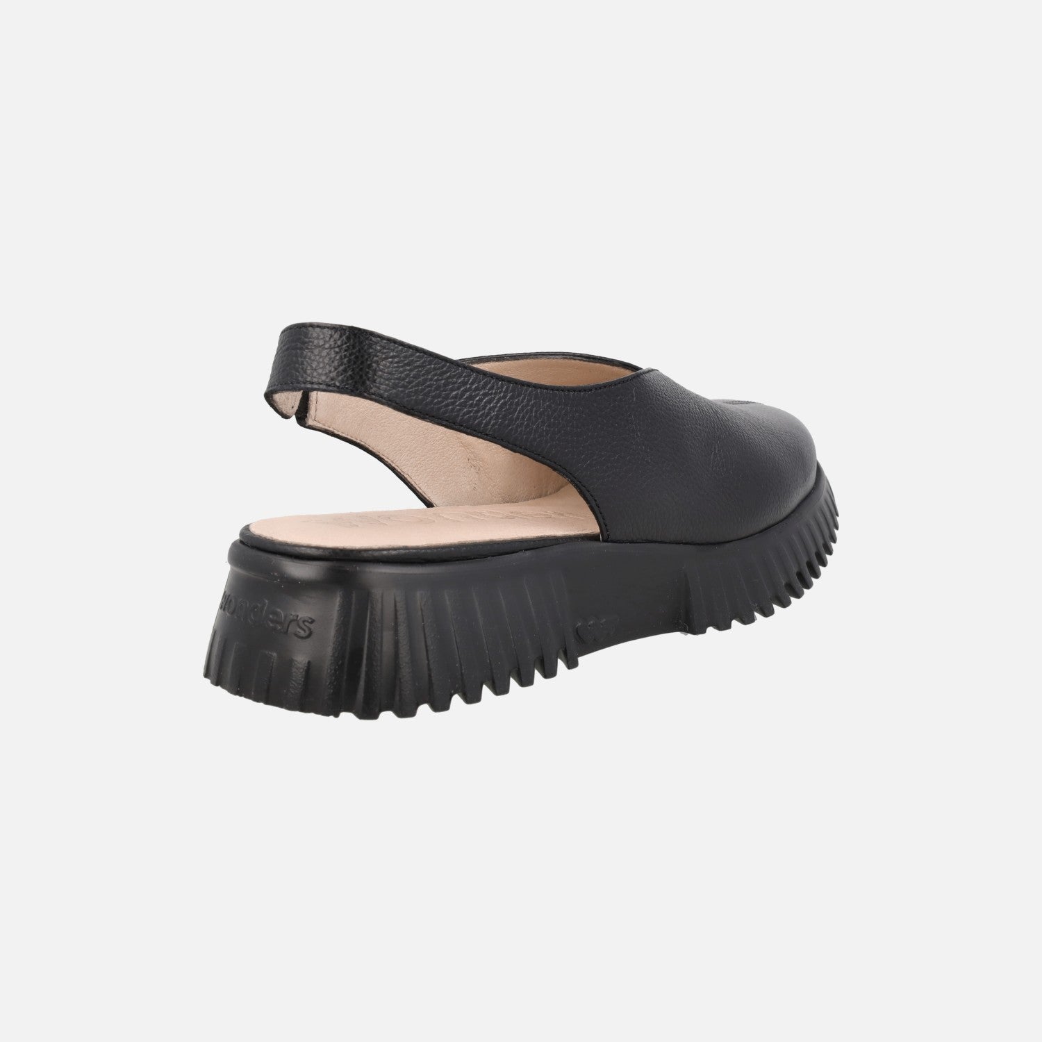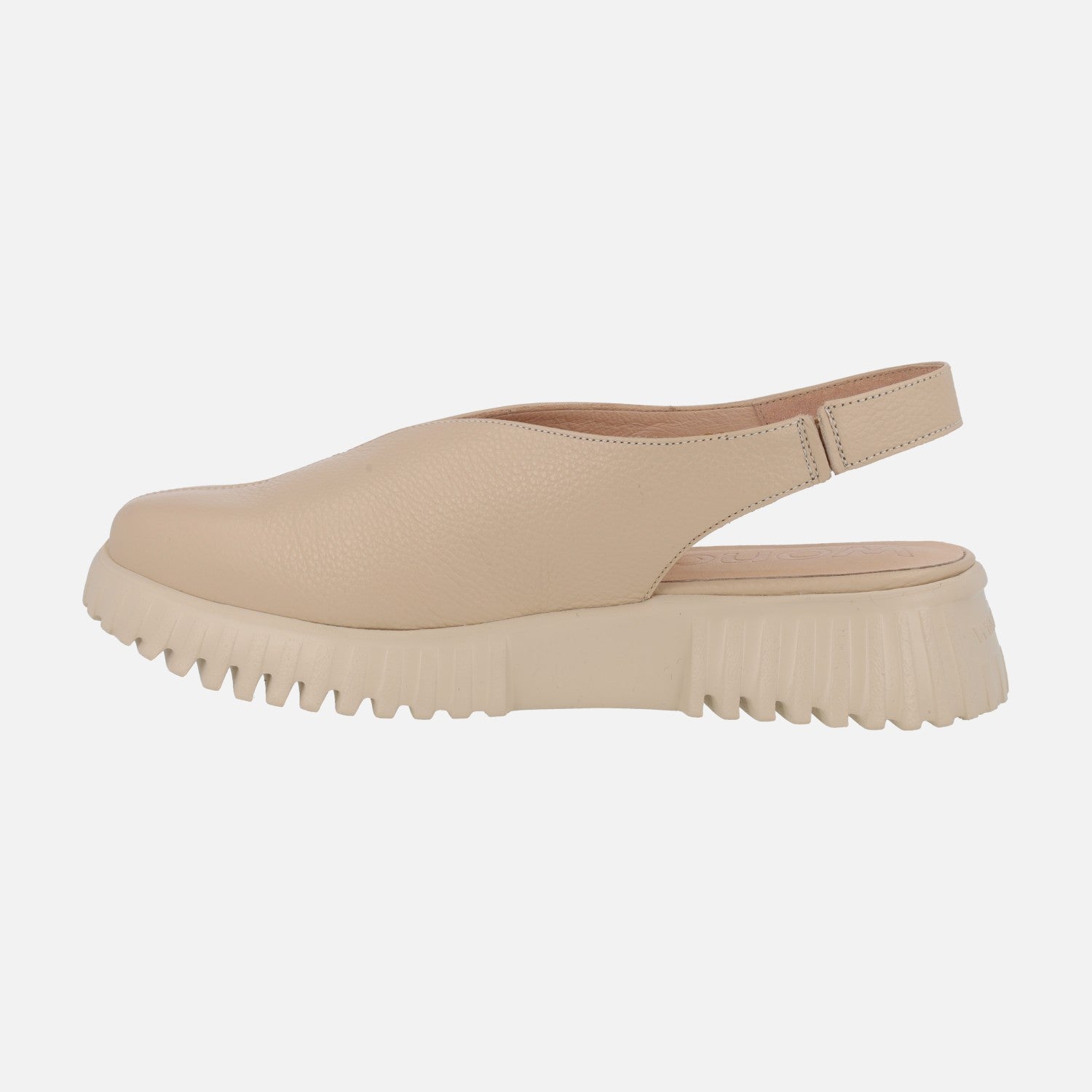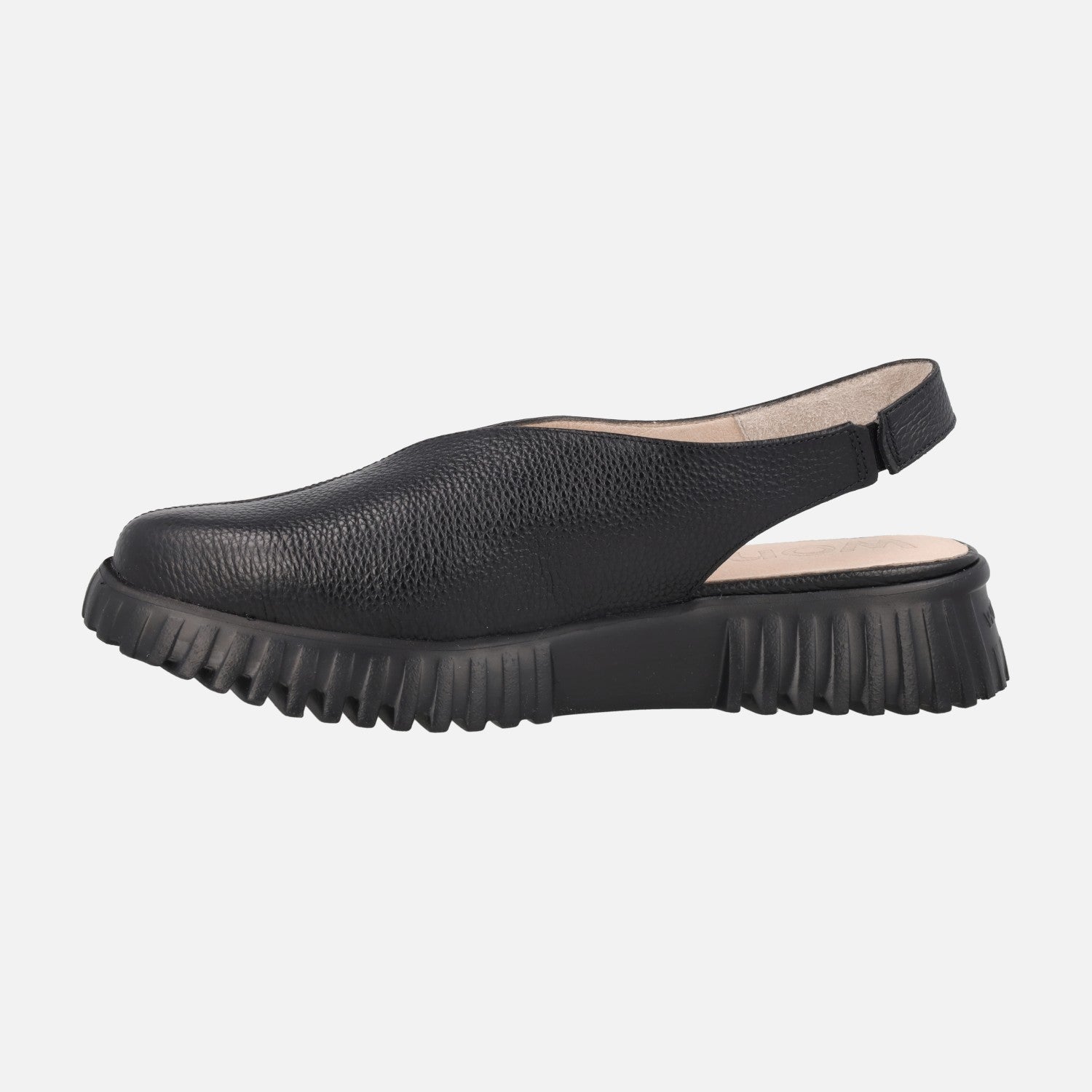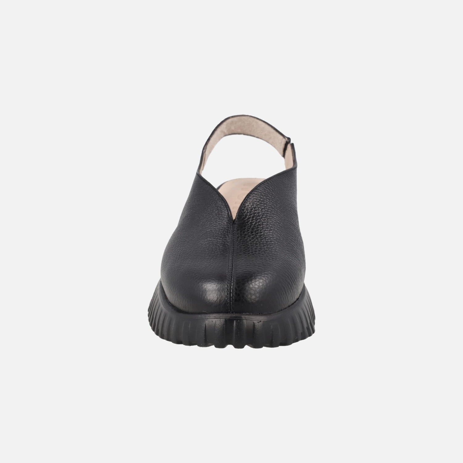 Zapatos destalonados de piel marca Wonders modelo A-4411 Flexfly 11, disponibles en negro y en beige. Zapatos estilo zuecos, con tira al talón que lleva una pequeña pieza elástica para mejor sujeción. Interiores en piel y microfibra. Plantillas Memory gel. Suela de EVA XL Extralight, super ligera y muy confortable, con 4 cm de altura trasera (2,5 cm parte delantera).