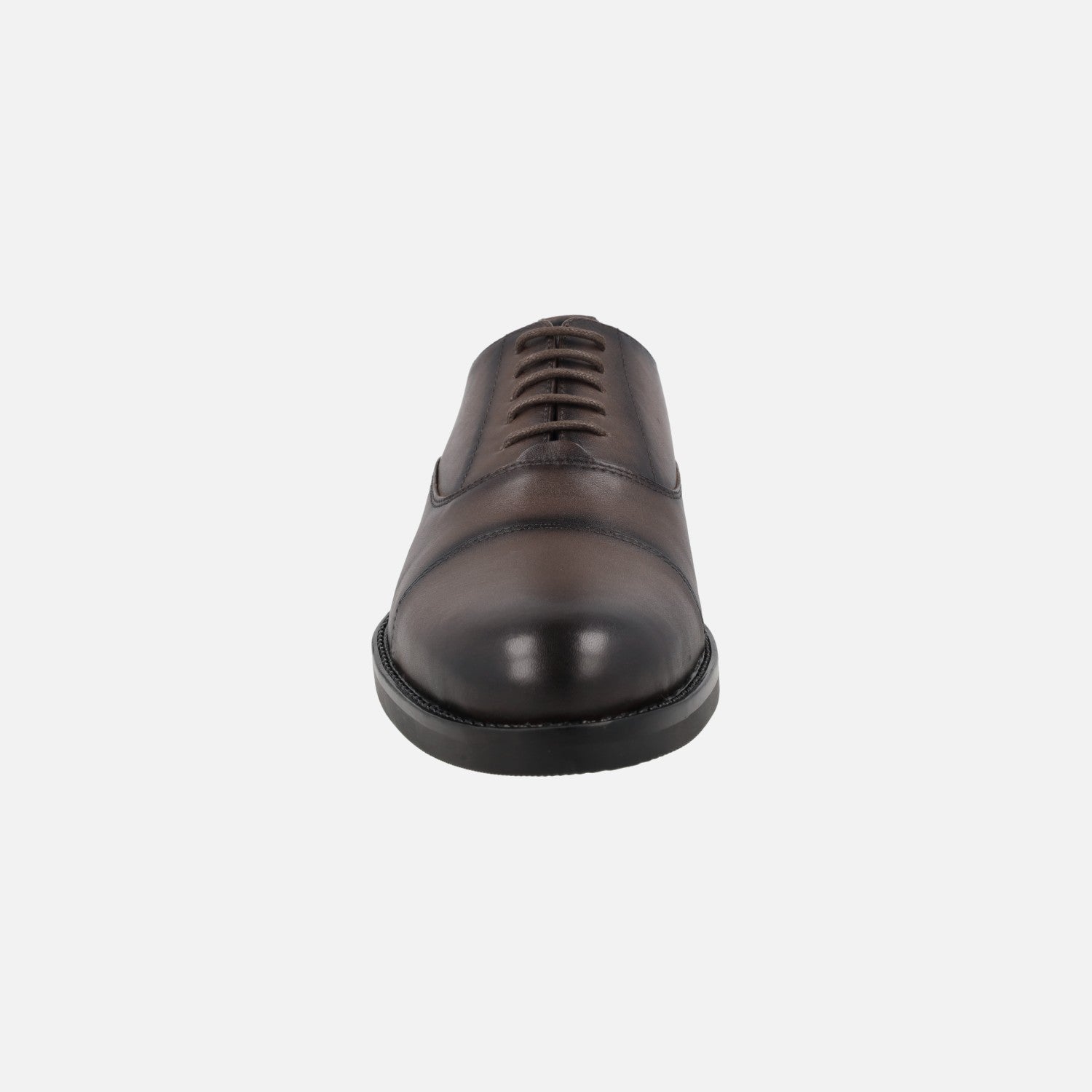 Elegantes zapatos de cordones para hombre de la marca Kipe's modelo 5458 Marrón o negro. Zapatos de piel, estilo oxford, elaborados en piel marrón chocolate o negra, con cierre de cordones y puntera pespunteada. Interior en combinado textil/piel, plantillas de piel. Suela sintética.