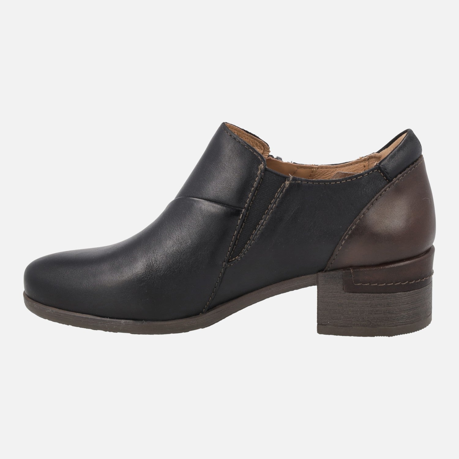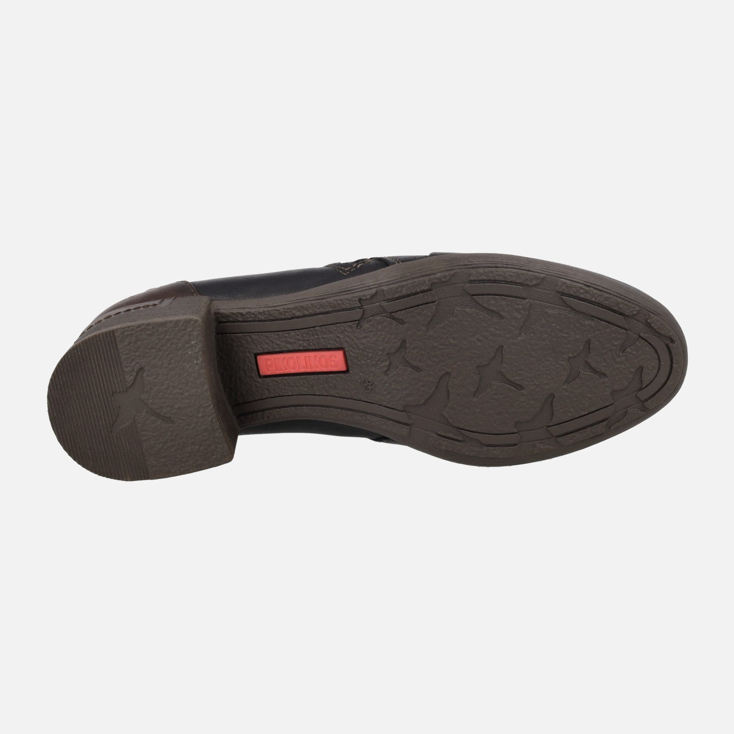 Zapatos de tacón para mujer de la marca Pikolinos, modelo Malaga W6W-5902C1 cuero o negro. Zapatos subidos elaborados en piel con cremallera en el lateral exterior (elástico en el lado interior). Interior en piel y tejido. Piso de goma, con tacones anchos, de 4,5 cms de altura.