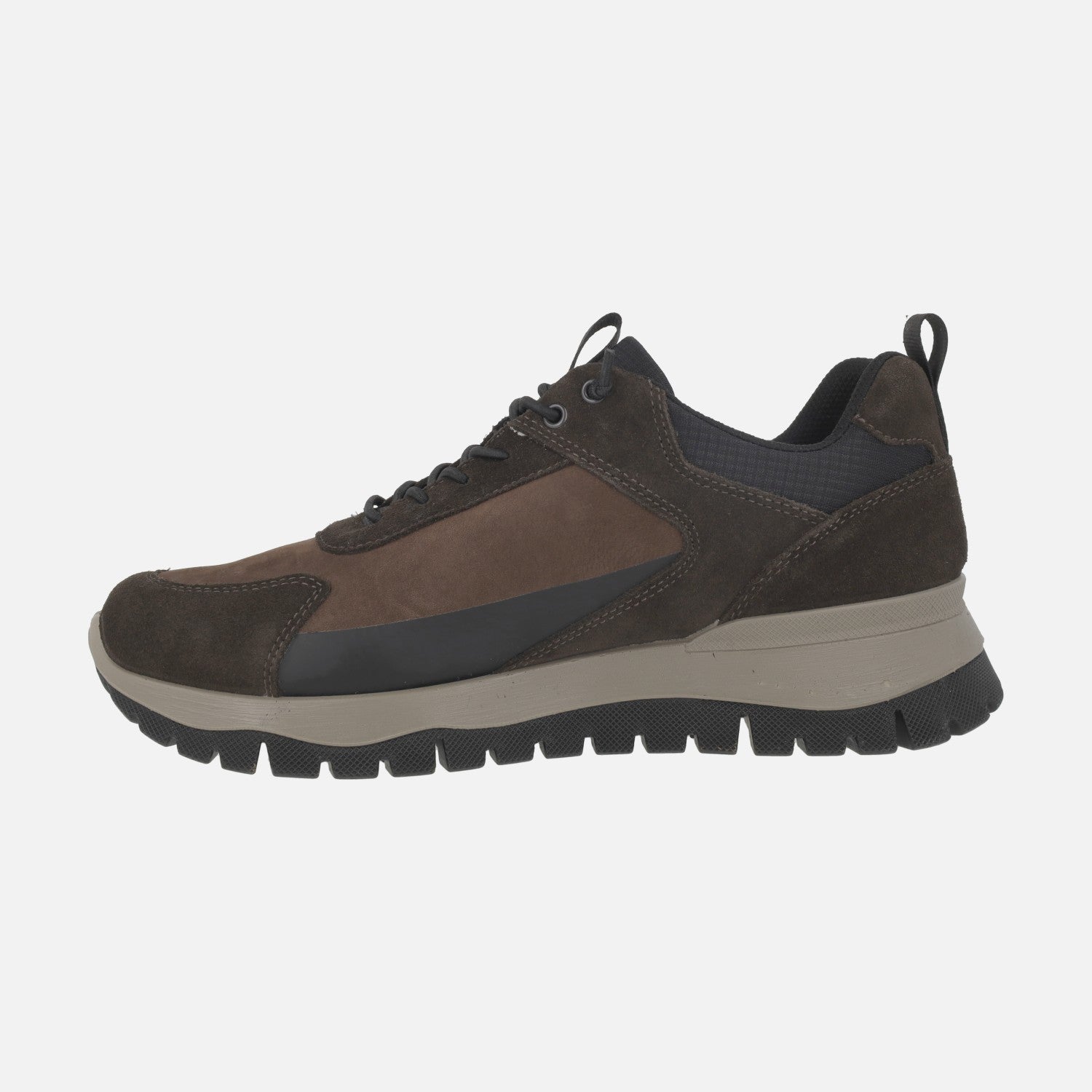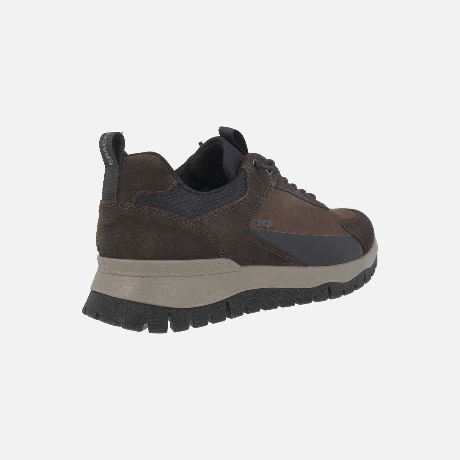 Zapatos deportivos para hombre de la marca Igi&co. modelo 86421, disponibles en color caffe y en fango. Deportivos elaborados en piel y tejido con cierre de cordones elásticos. Disponibles en combinado marrón o taupe. Interior textil con plantillas extraíbles forradas en piel. Membrana GORE TEX, impermeable. Piso sintético.