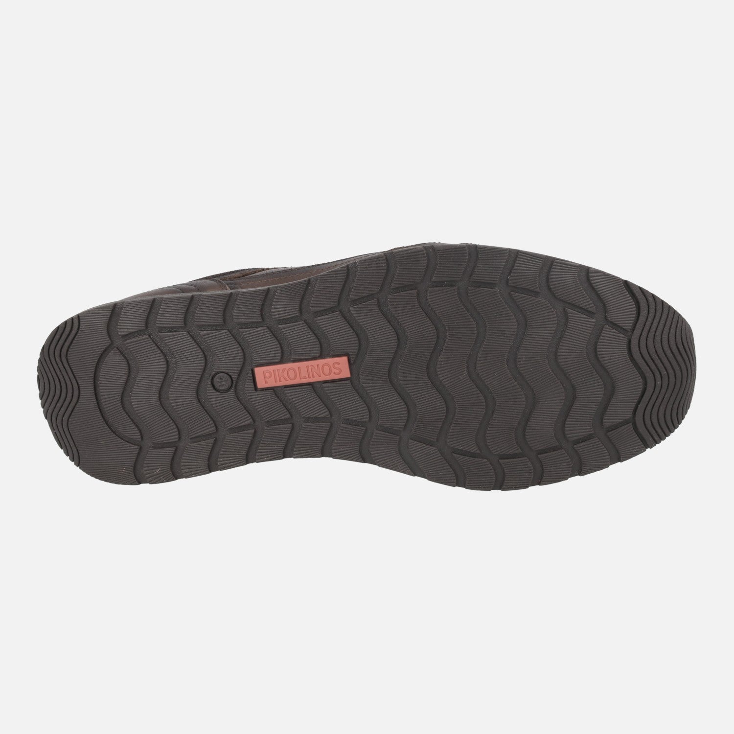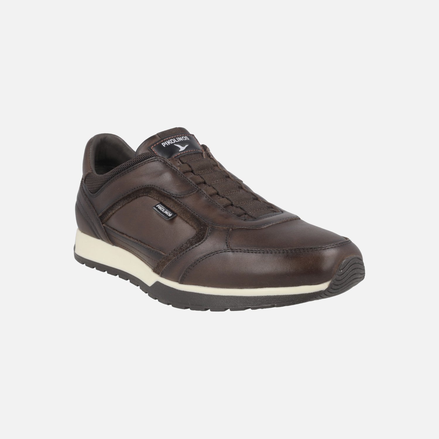 Elegantes zapatos deportivos para hombre de la marca Pikolinos modelo Cambil M5N-6247C1 Olmo. Deportivos de piel marrón, con cierre de elásticos. Interior mixto en piel y tejido, con plantillas extraíbles Memory foam. Piso de goma.