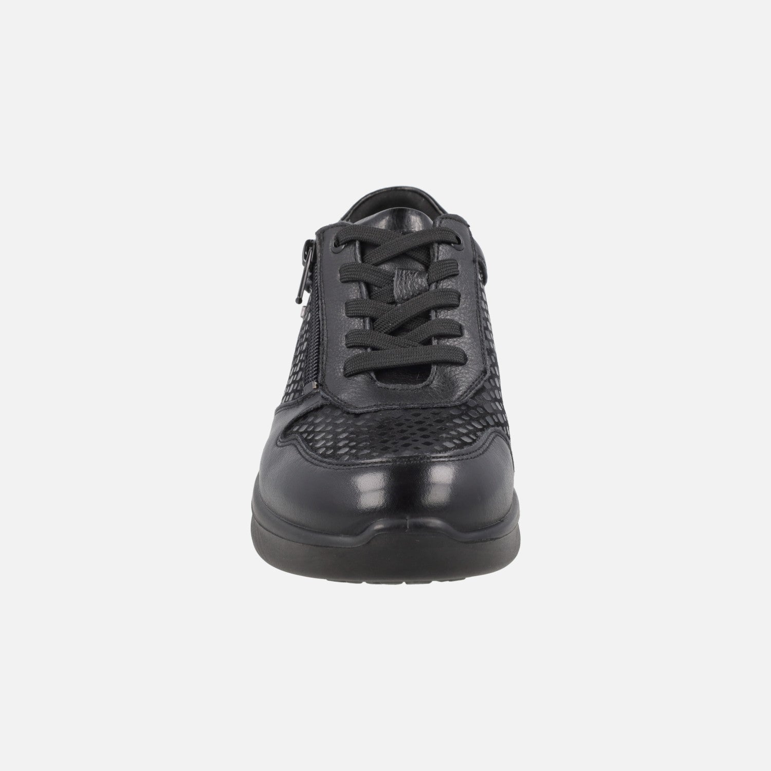 Zapatos deportivos confort en combinado negro con cordones y cremallera