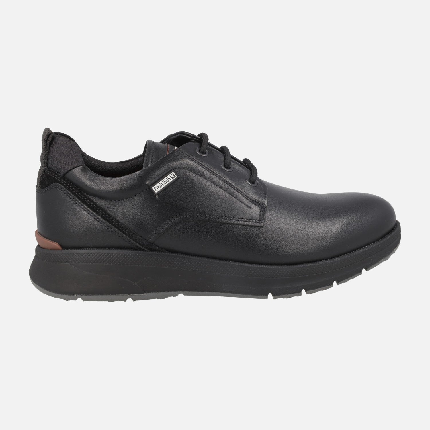 Zapatos deportivos de piel para hombre de la marca Pikolinos modelo Cordoba M1W-4153 disponibles en negro y en cuero. Zapatos de piel, con cierre de cordones y tirador textil. Interior mixto en piel y tejido, con plantillas extraíbles de Memory foam. Piso de goma Extralight, muy ligero a la par que resistente.