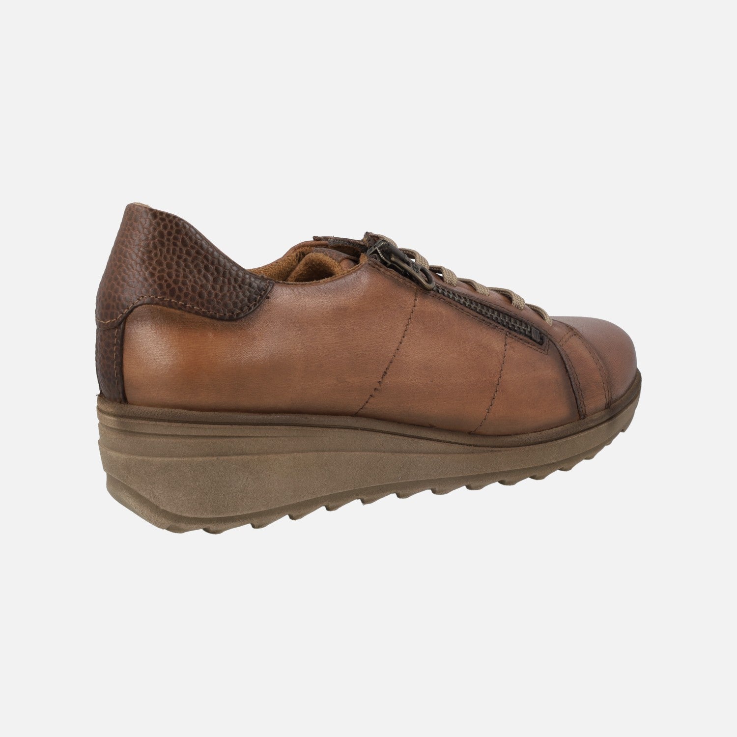 Zapatos deportivos de piel de la marca Giorda modelo ZA27900 Cuero. Zapatos de piel con cordones y además cremallera lateral en el lado exterior. Interior mixto de piel y tejido. Piso sintético, con 4 cm de altura trasera (2 cm parte delantera). Made in SPain.