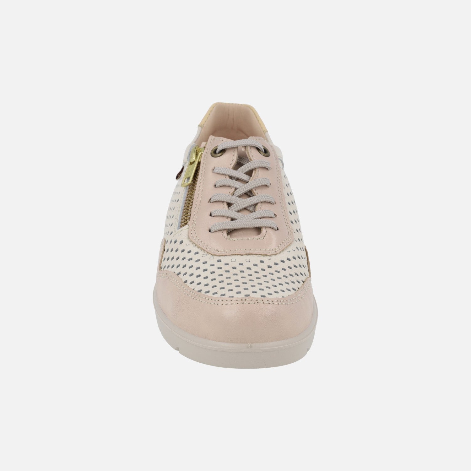 Zapatos deportivos de piel con cordones y cremallera en combinado vainilla