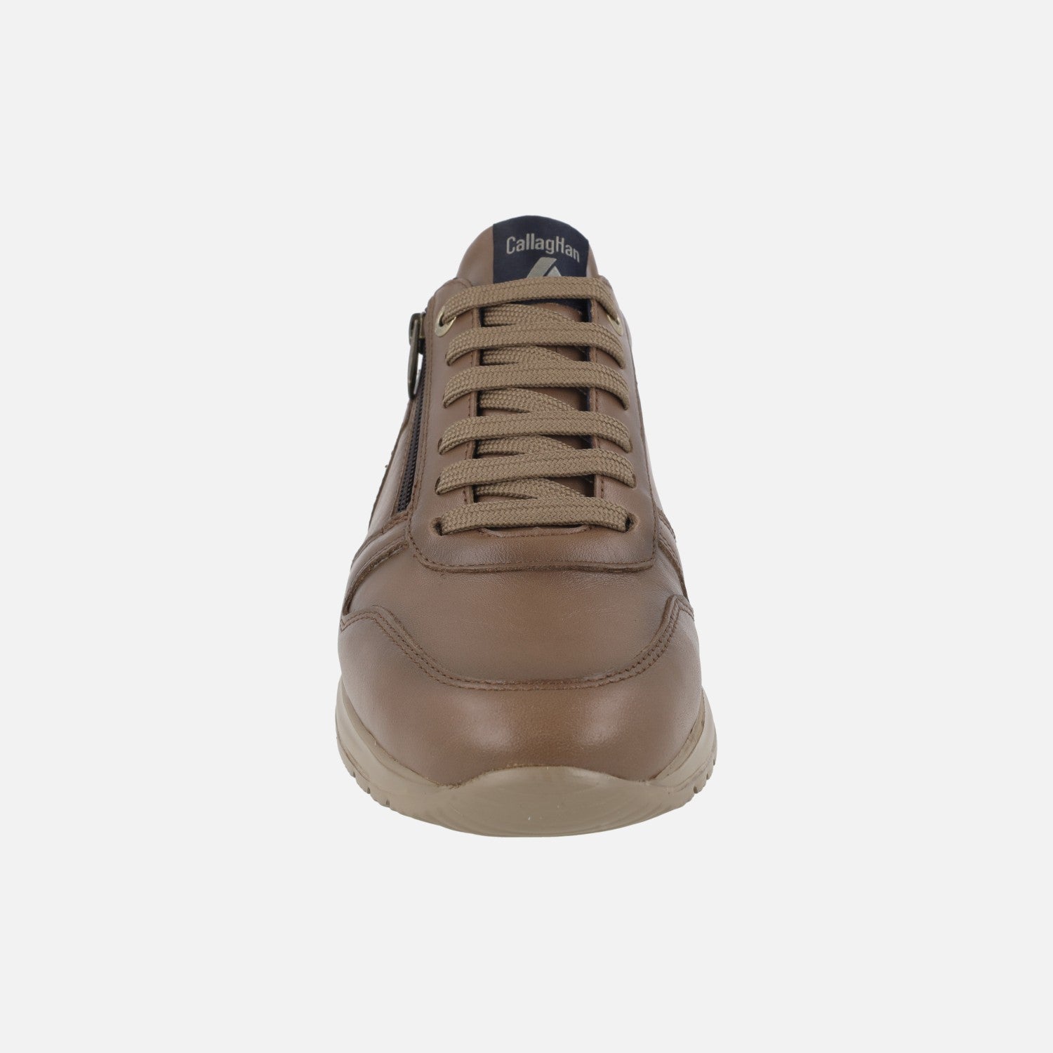 Zapatos deportivos para hombre de la marca Callaghan modelo 91330 Vison. Deportivos de piel en color marrón claro/taupe con cremallera lateral y cordones en la parte delantera. Interior textil con plantillas extraíbles. Piso de goma XL Extralight.