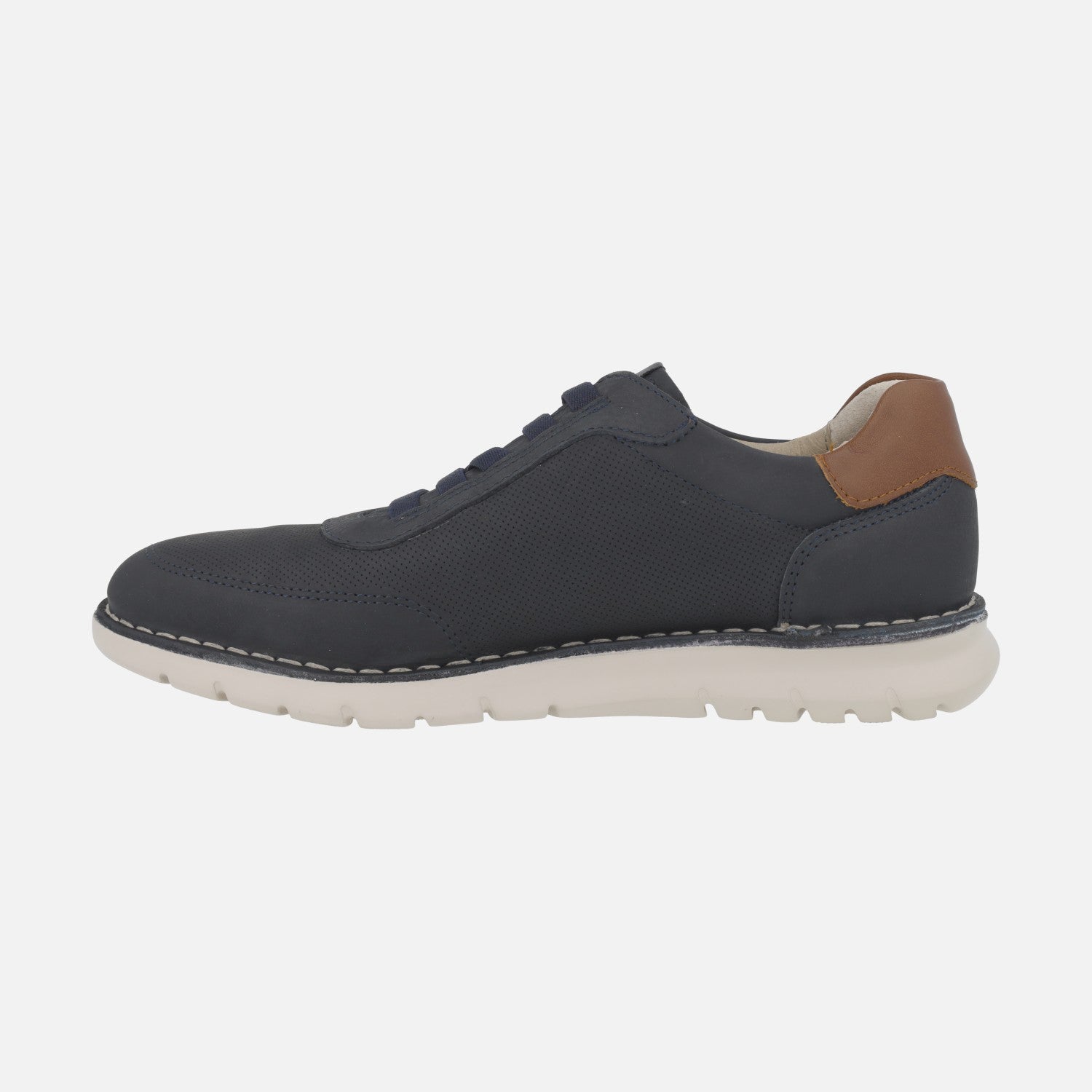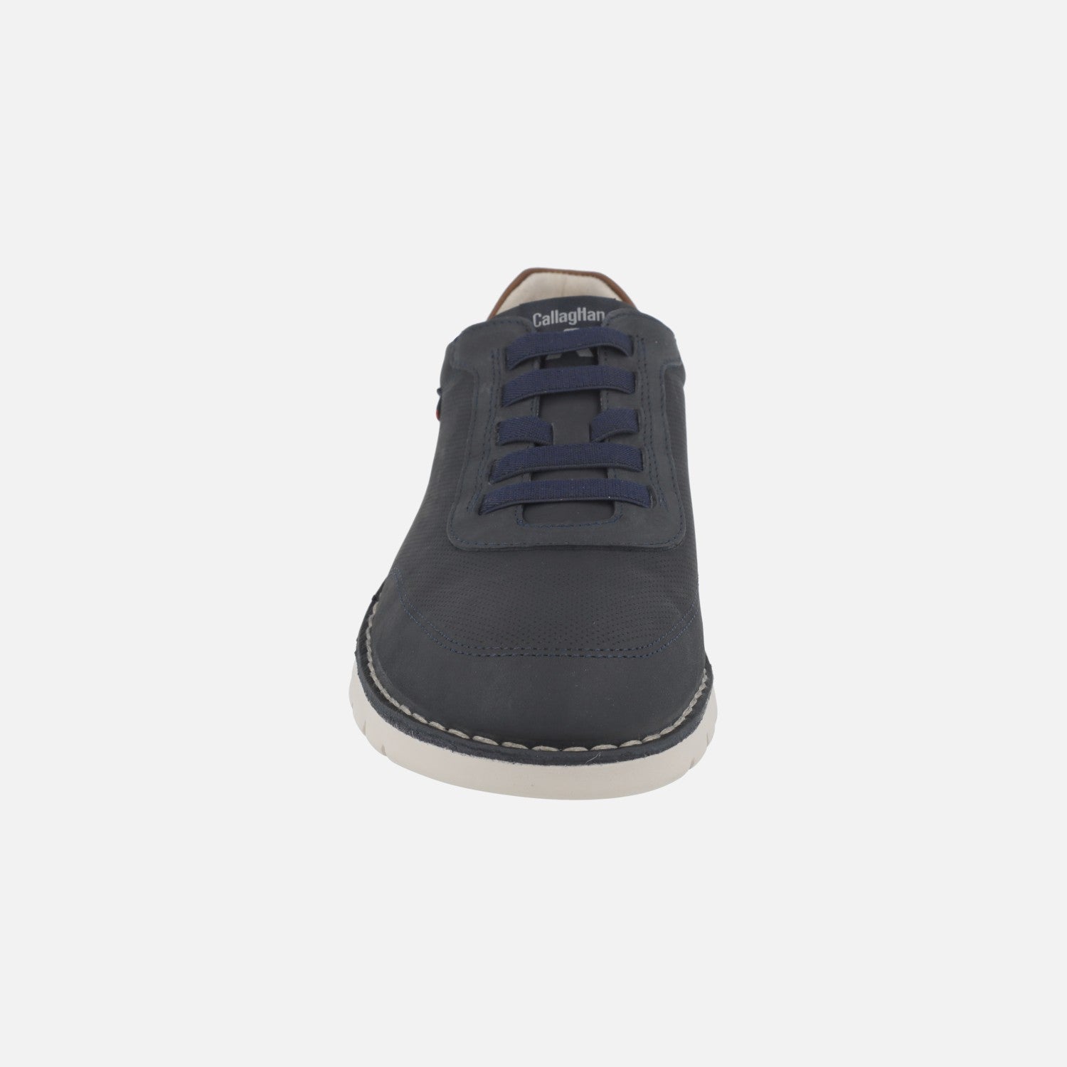 Zapatos deportivos para hombre de la marca Callaghan modelo 47116, disponibles en piel nobuck cuero o azul marino. Cordones elásticos. Interior textil con plantillas extraíbles. Piso sintético Extralight.