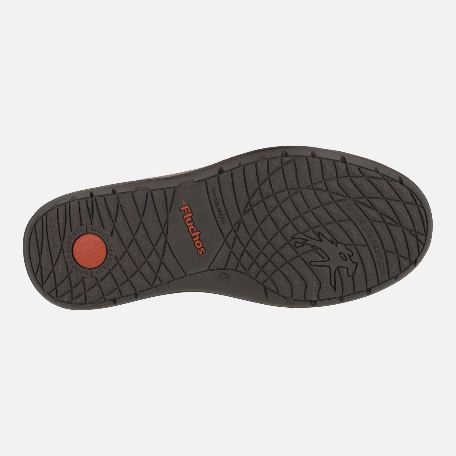 Zapatos deportivos para hombre modelo Rocky de la marca Fluchos F2040 Piedra. Deportivos elaborados en piel marrón, con cierre de cordones elásticos. Interior textil con plantillas extraíbles. Piso de goma.