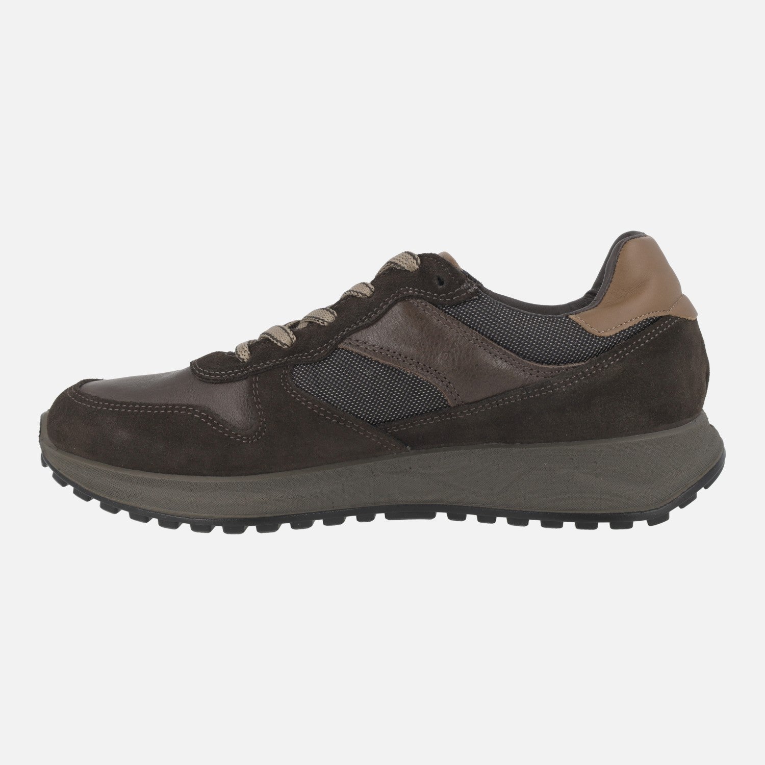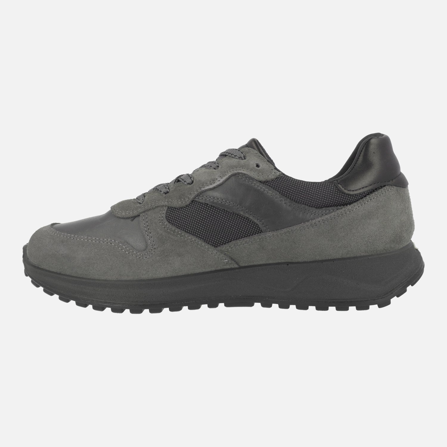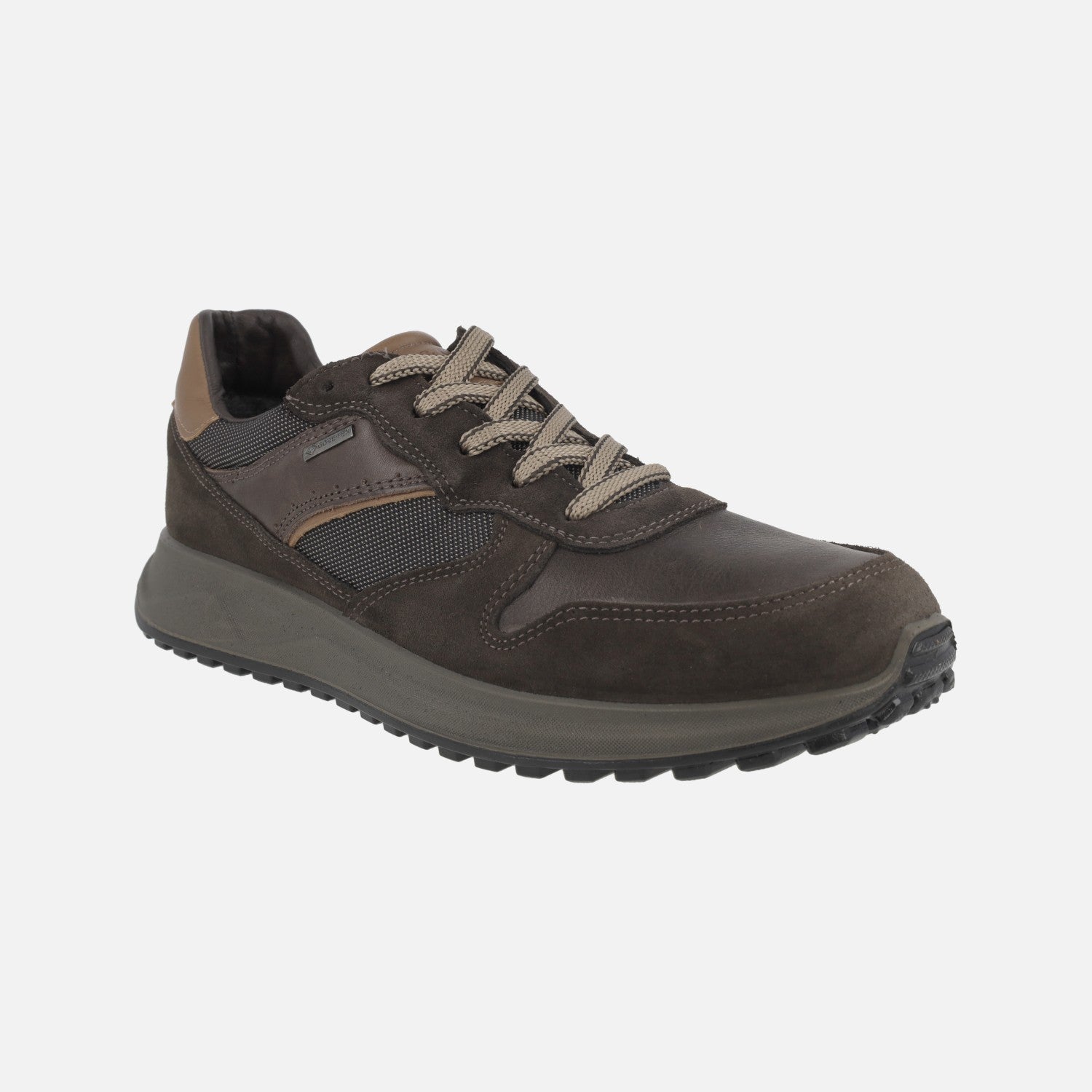 Zapatos deportivos para hombre de la marca italiana IGI&CO. modelo 86386 disponibles en antracita (gris) o caffe (marrón). Sneakers multi material, elaborados en combinado de tejido, serraje y piel, con cierre de cordones. Interior textil con plantillas extraíbles forradas de piel. Membrana interior de GORE TEX, impermeable y gran aislante térmico. Piso sintético. Made in Italy.