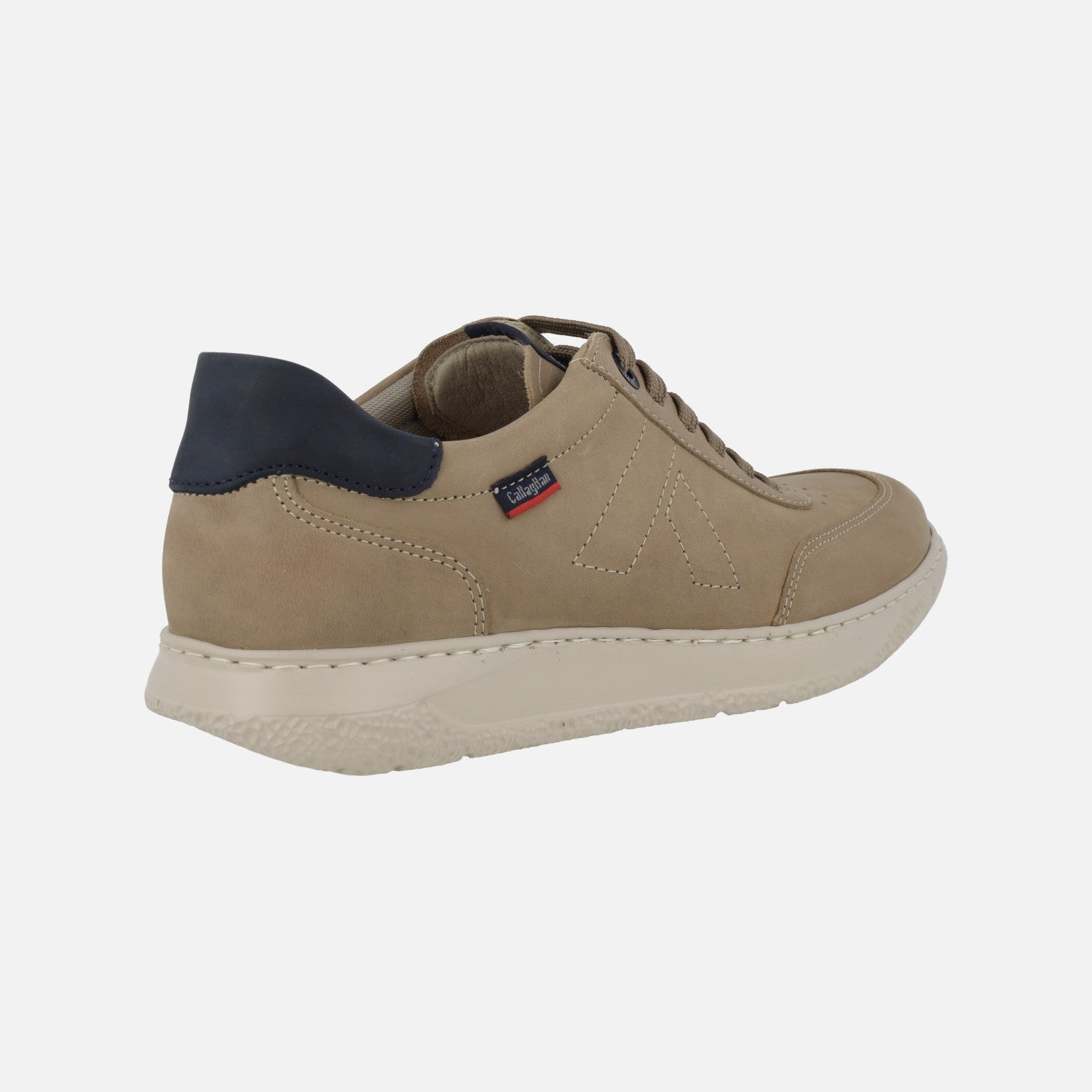 Zapatos deportivos para hombre de la marca Callaghan modelo 61802 Taupe. Zapatos elaborados en piel nobuck color taupe con detalles en azul. Cierre de cordones. Interior textil. Plantillas extraíbles. Piso sintético super ligero, Extralight.