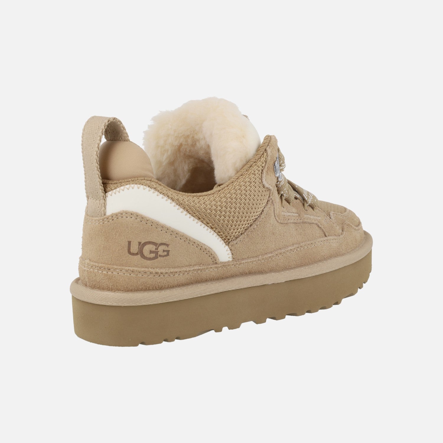 Preciosas zapatillas deportivas UGG LOWMEL 1144032, disponibles en sand (beige), rocky oak (marrón) y en chesnut (camel). Zapatillas deportivas elaboradas en ante con detalles en tejido. Cierre con cordones gruesos. Tirador en la parte trasera. Cuello acolchado y lengüeta XL forrada de pelo. Forro combinado de poliéster, lyocell y lana reciclada. Planta UGGPLUSH, forrada de pelo. Suela de EVA, de 3 cm de altura.