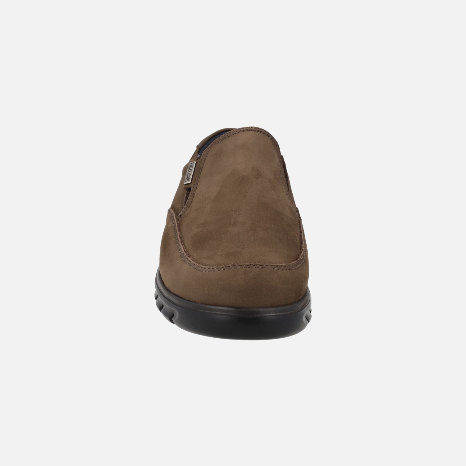Zapatos mocasines para hombre de la marca Callaghan, modelo 17301. Zapatos confort, elaborados en piel nobuck color marrón, con elásticos laterales. Membrana interior WATERADAPT, impermeable. Interior textil con plantillas extraíbles. Piso de goma Extralight, muy ligero a la par que resistente.