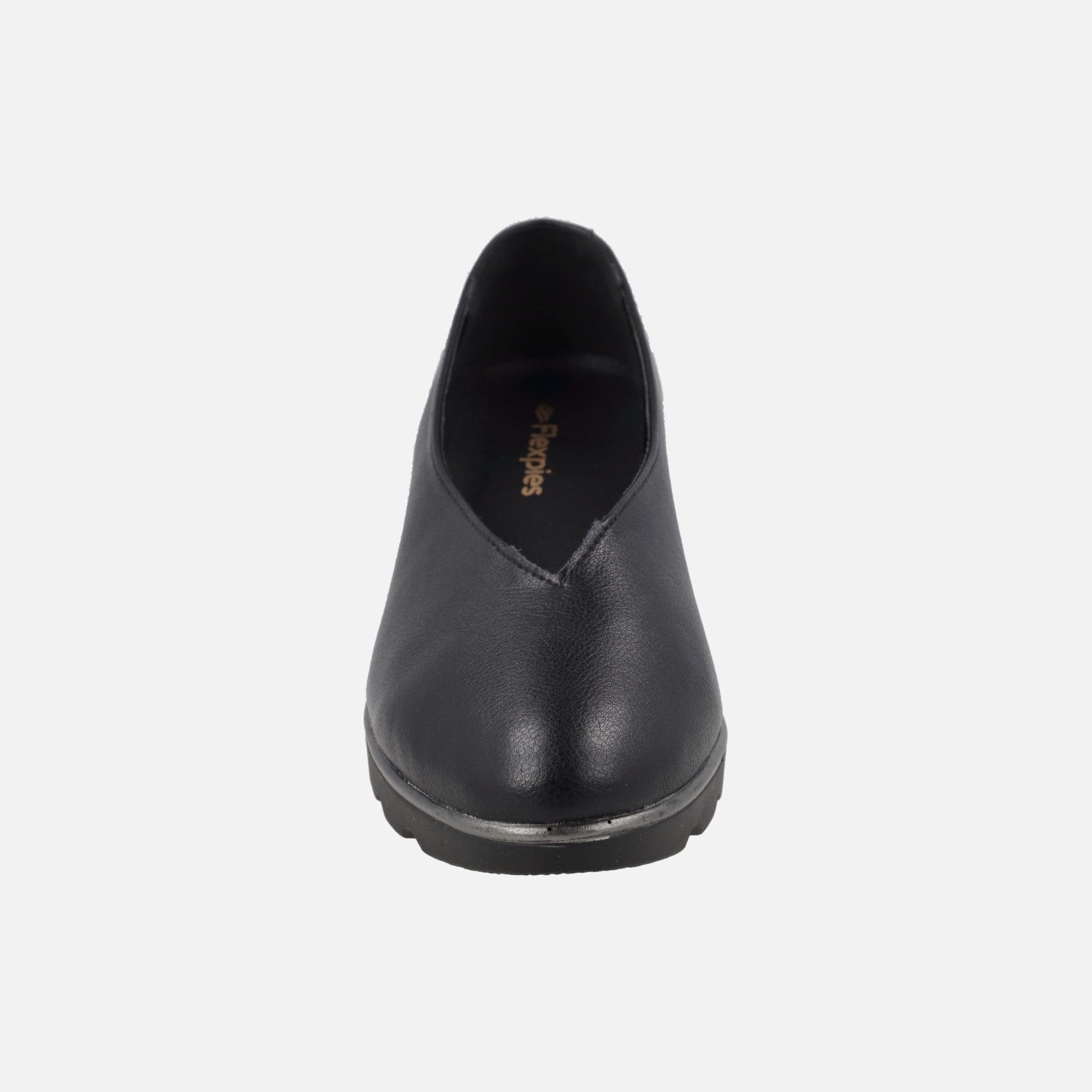 Zapatos confort para mujer de la marca Calzazul, modelo 3050 Negro. Zapatos negros de piel estilo salón, con escote pico. Interior textil con plantillas extraíbles. Cuña media de goma, con 5 cm de altura trasera (1,5 cm parte delantera).