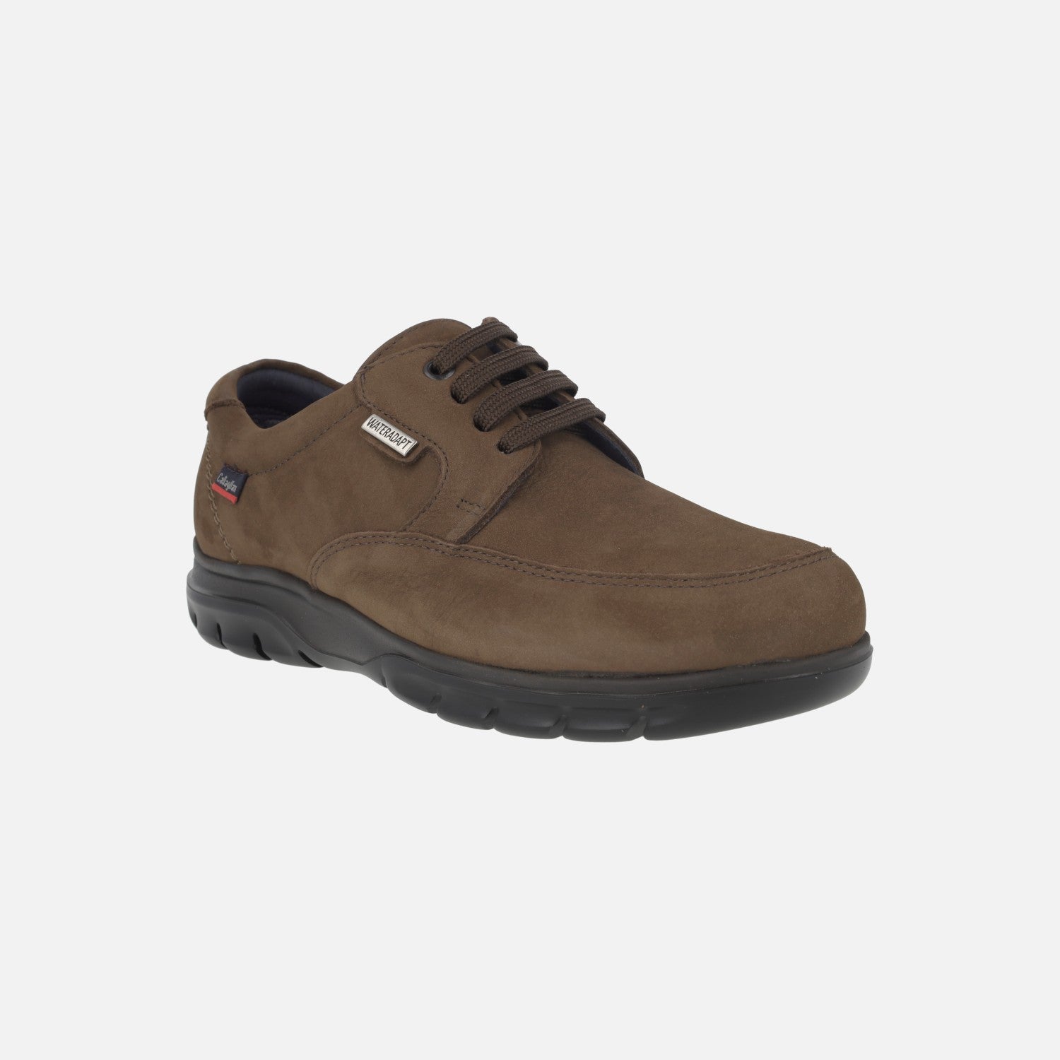 Zapatos de cordones para hombre de la marca Callaghan, modelo 17300. Zapatos confort, elaborados en piel nobuck color marrón, con cierre de cordones. Membrana interior WATERADAPT, impermeable. Interior textil con plantillas extraíbles. Piso de goma Extralight, muy ligero a la par que resistente.