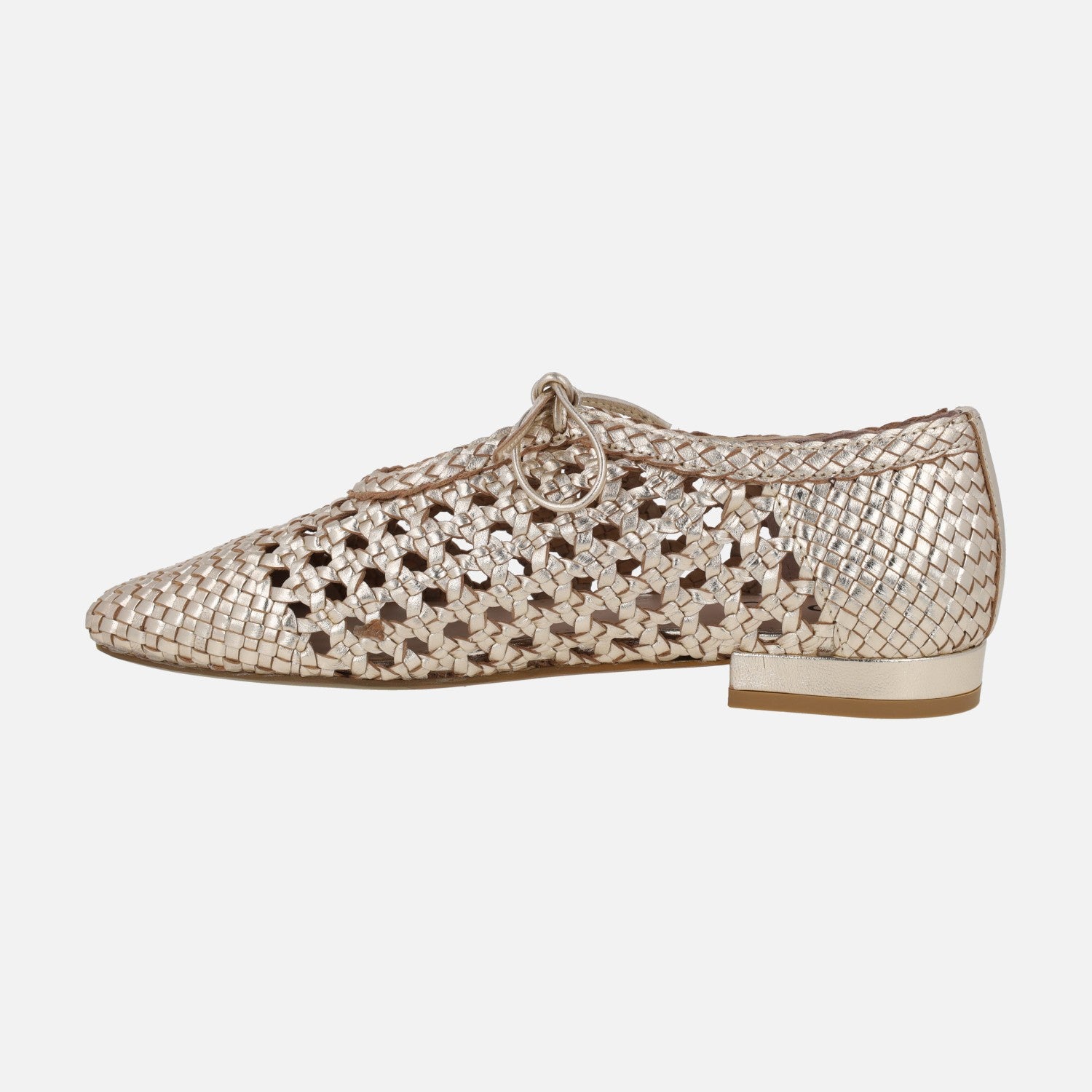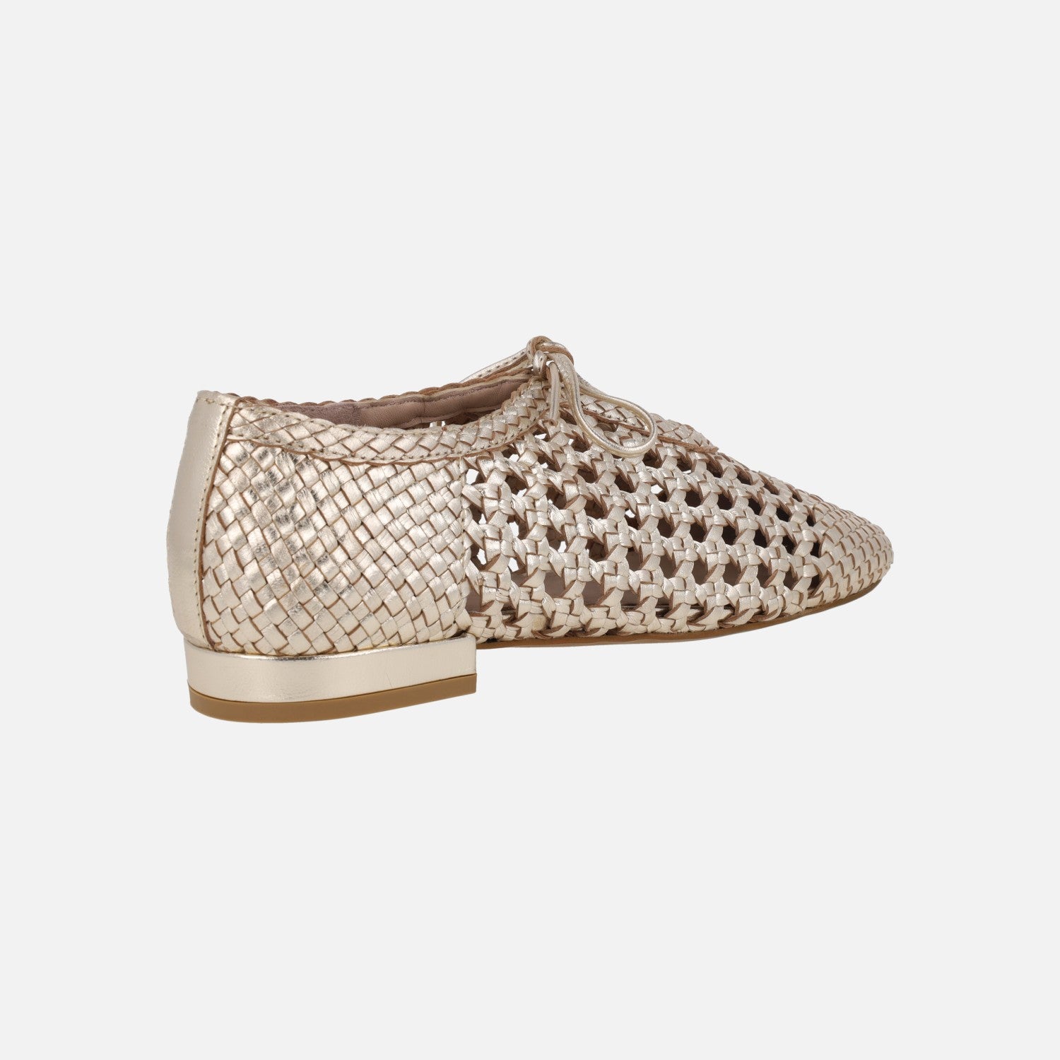 Zapatos de piel trenzada en color oro de la marca Top3 modelo SR1717 Oro. Zapatos trenzados con cierre de cordón. Interiores en piel. Suela sintética con tacones de 2 cm.